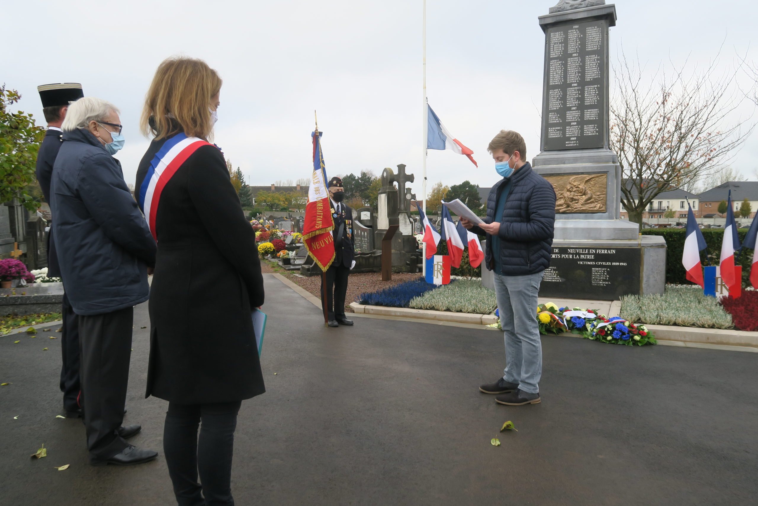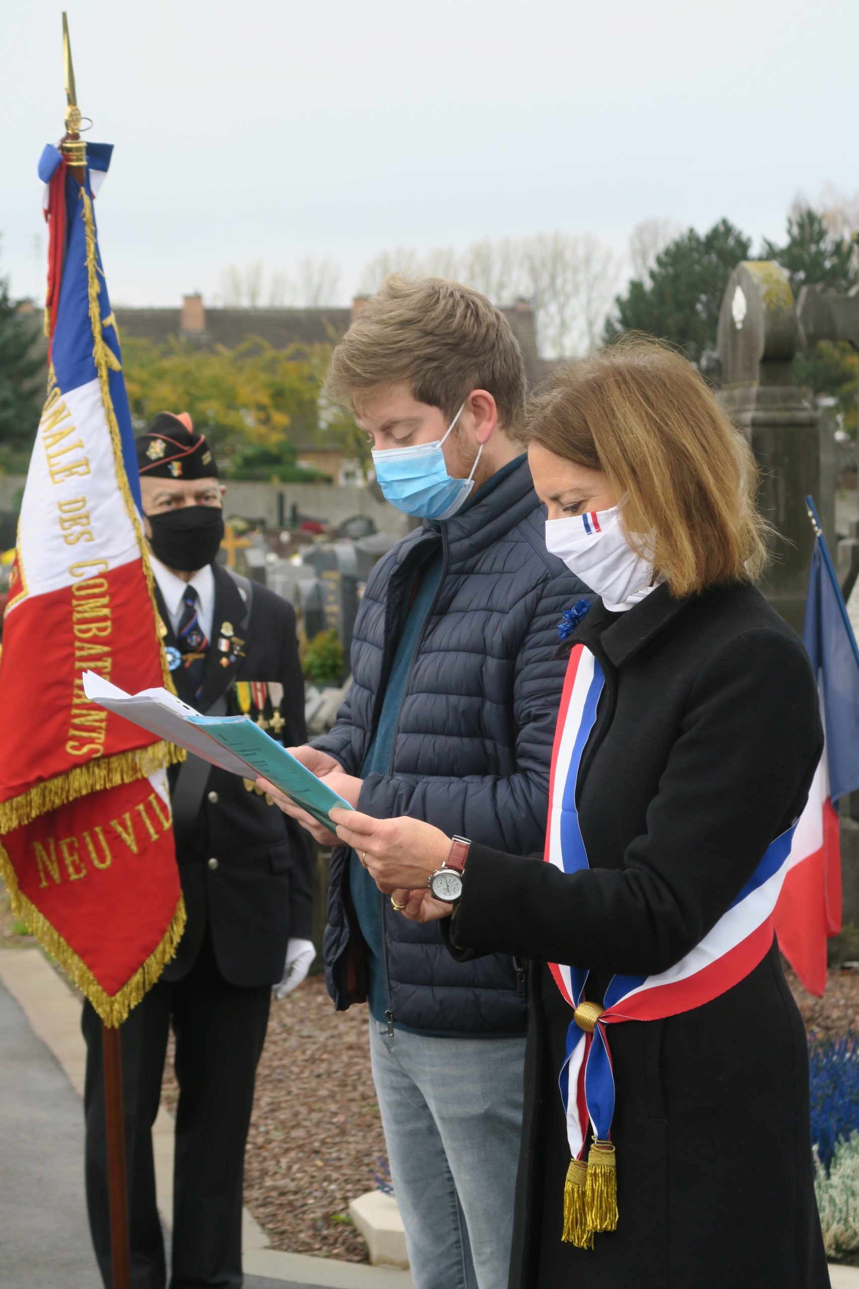 Pour autant, nous n’avons pas oublié nos martyrs du passé. Les écoles neuvilloises non plus. Marie TONNERRE-DESMET, Maire, accompagnée de Robin DELPLANQUE, conseiller municipal en charge du devoir de mémoire et des cérémonies patriotiques et de Daniel MASURE, Président de la section locale de l’Union Nationale des Anciens Combattants se sont recueillis, pour eux, pour vous, en leur mémoire.