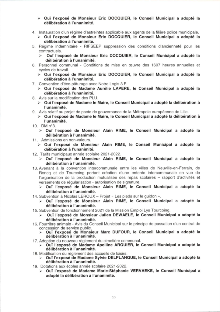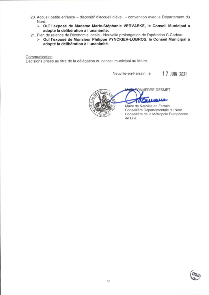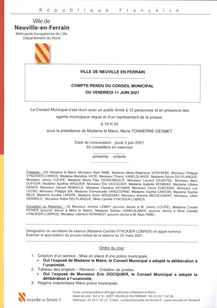 Compte-rendu du Conseil municipal du vendredi 11 juin 2021
