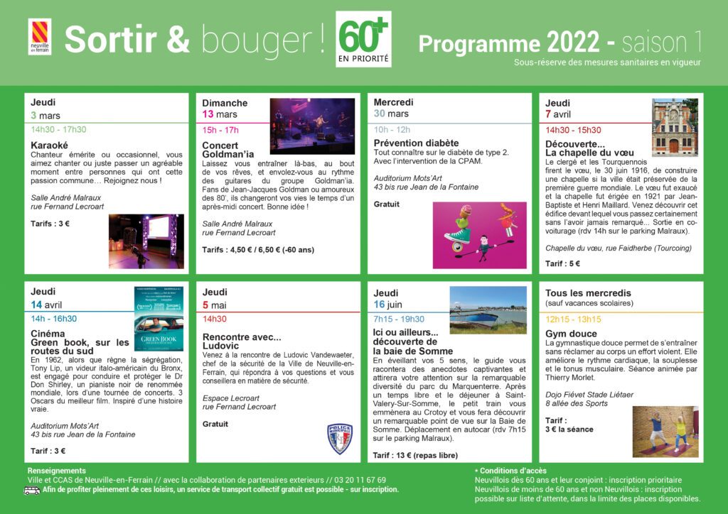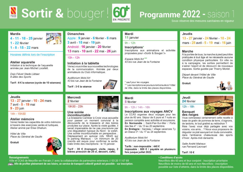 La nouvelle programmation de Sortir&Bouger, les animations et sorties réservées en priorité aux 60 et plus, est sortie. Des ateliers mémoire ou initiations à la tablette numérique aux instants culturels, musicaux et conviviaux, cette saison s’annonce intense et variée.