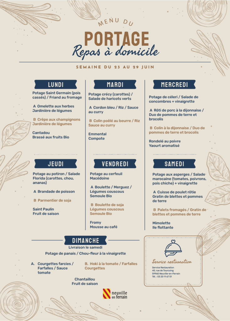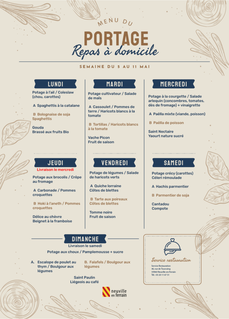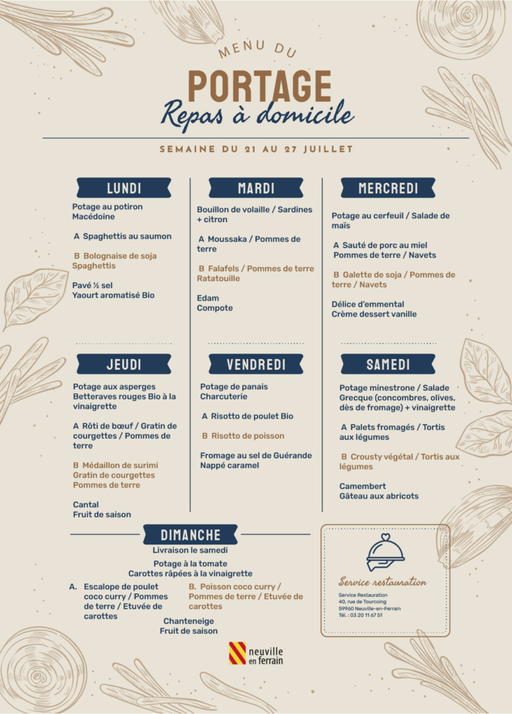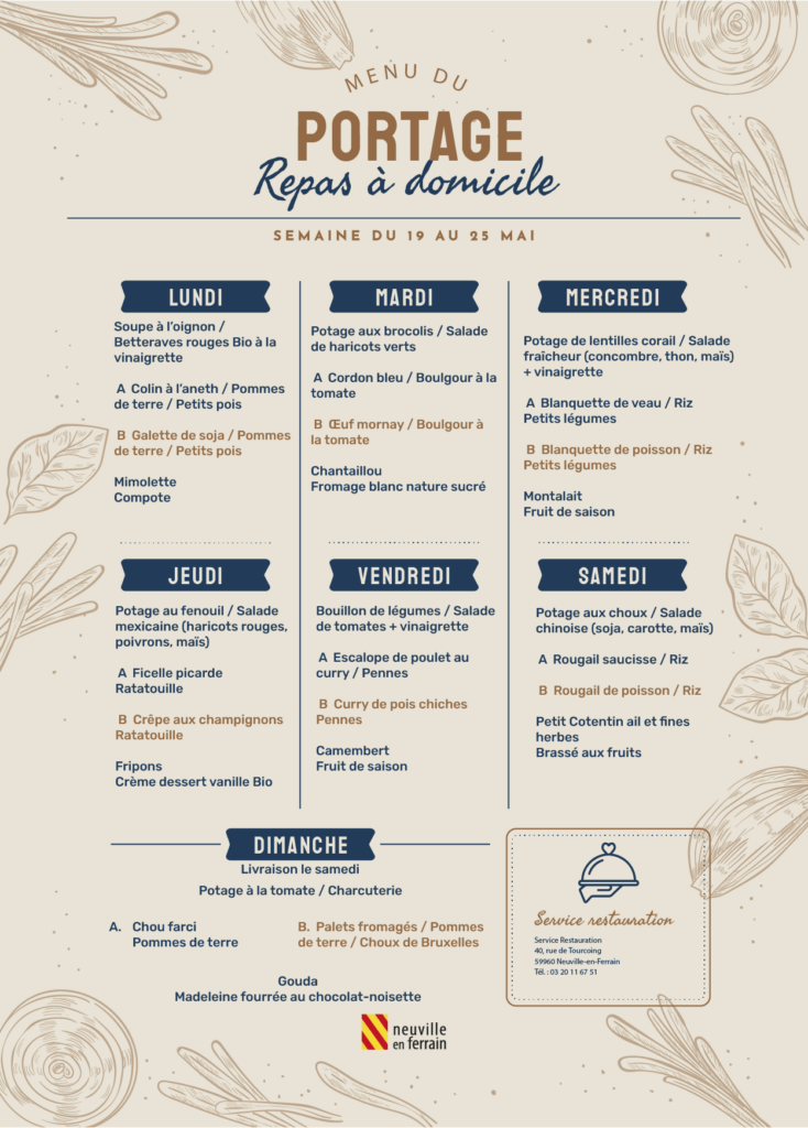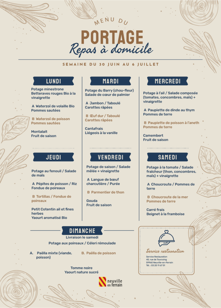 Il existe un service de portage de repas à domicile, pour les Seniors de plus de 75 ans, ainsi que pour les personnes souffrantes d’une pathologie et nécessitant un maintien à domicile. Ce service est proposé du lundi au dimanche.